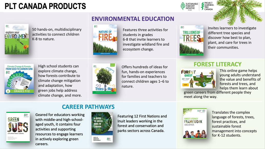 Project Learning Tree Canada (PLT Canada), a non-profit charity in Canada, works to advance environmental education, forest literacy and career pathways using trees and forests as windows on the world. We offer a lifetime of learning from early childhood through adulthood through our award-winning curriculum resources, programs for young adults to explore forests and green careers, and professional development for educators. Together, we are growing future forest and conservation leaders. PLT Canada is an initiative of SFI.